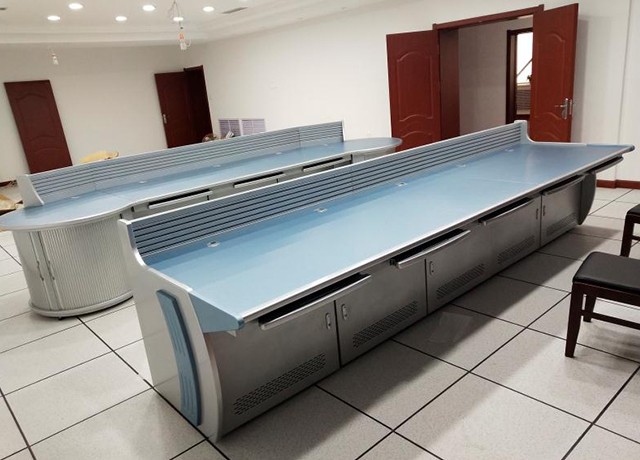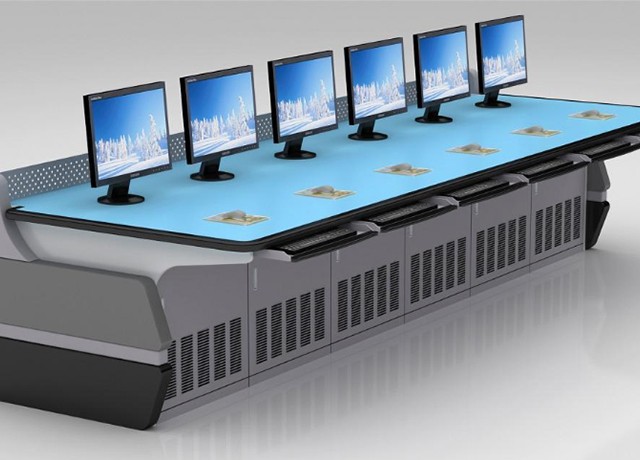 7:操作臺(tái)適用于通訊指揮、安防監(jiān)控、調(diào)度中心、廣播電視等領(lǐng)域,和電視墻配合使用更具效果。